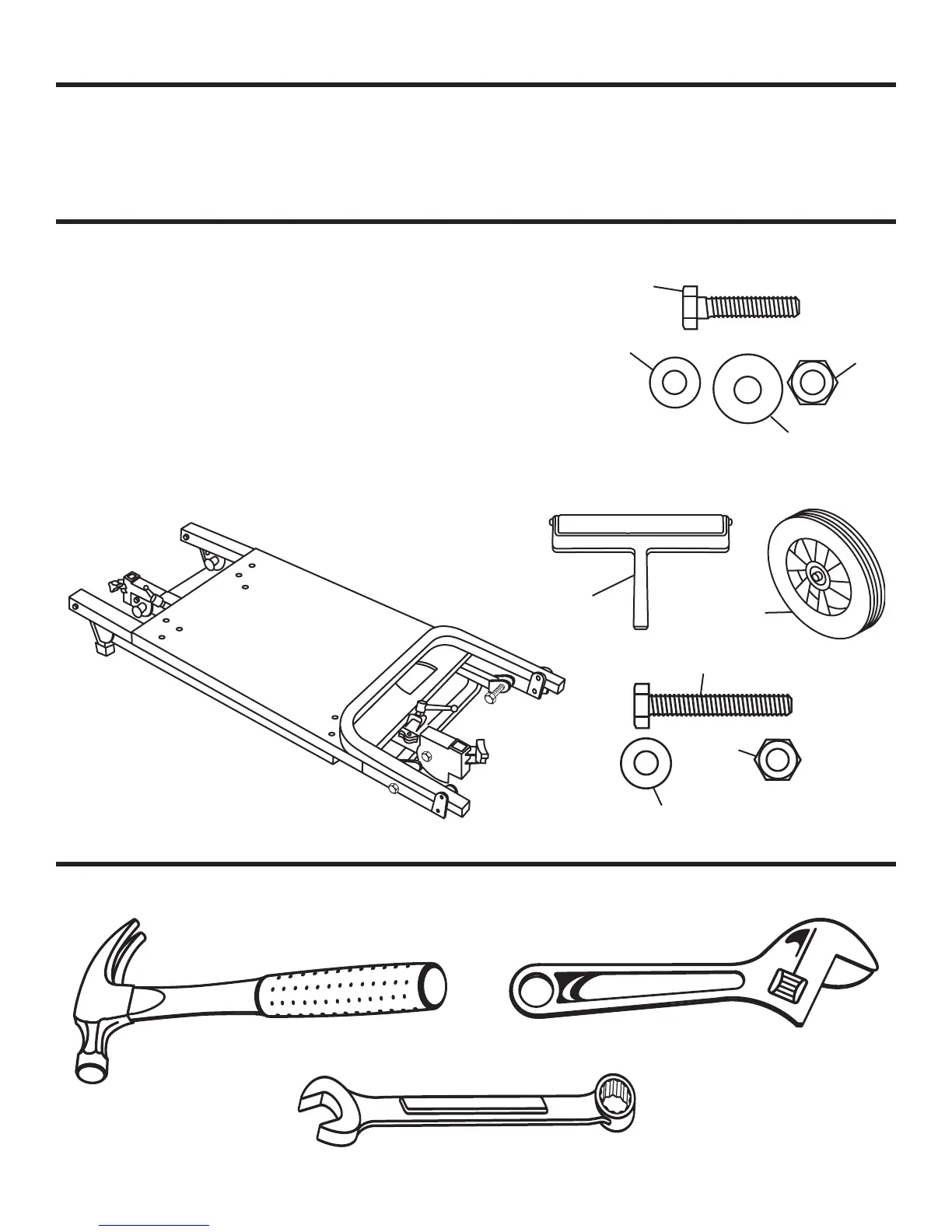 The following tools (not included) are needed for properly assembling your Miter Saw Utility Vehicle.