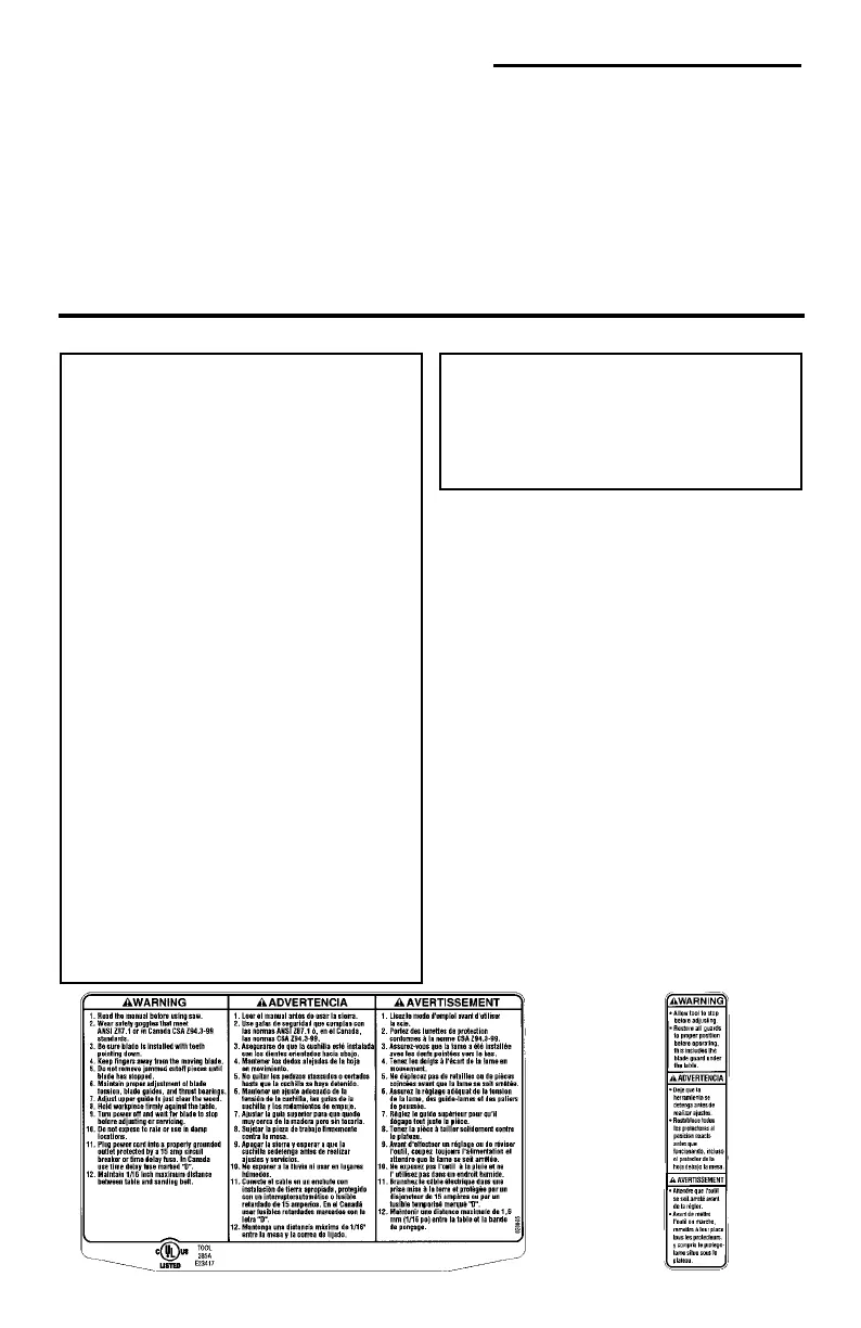 Safety Instructions For Band Saw