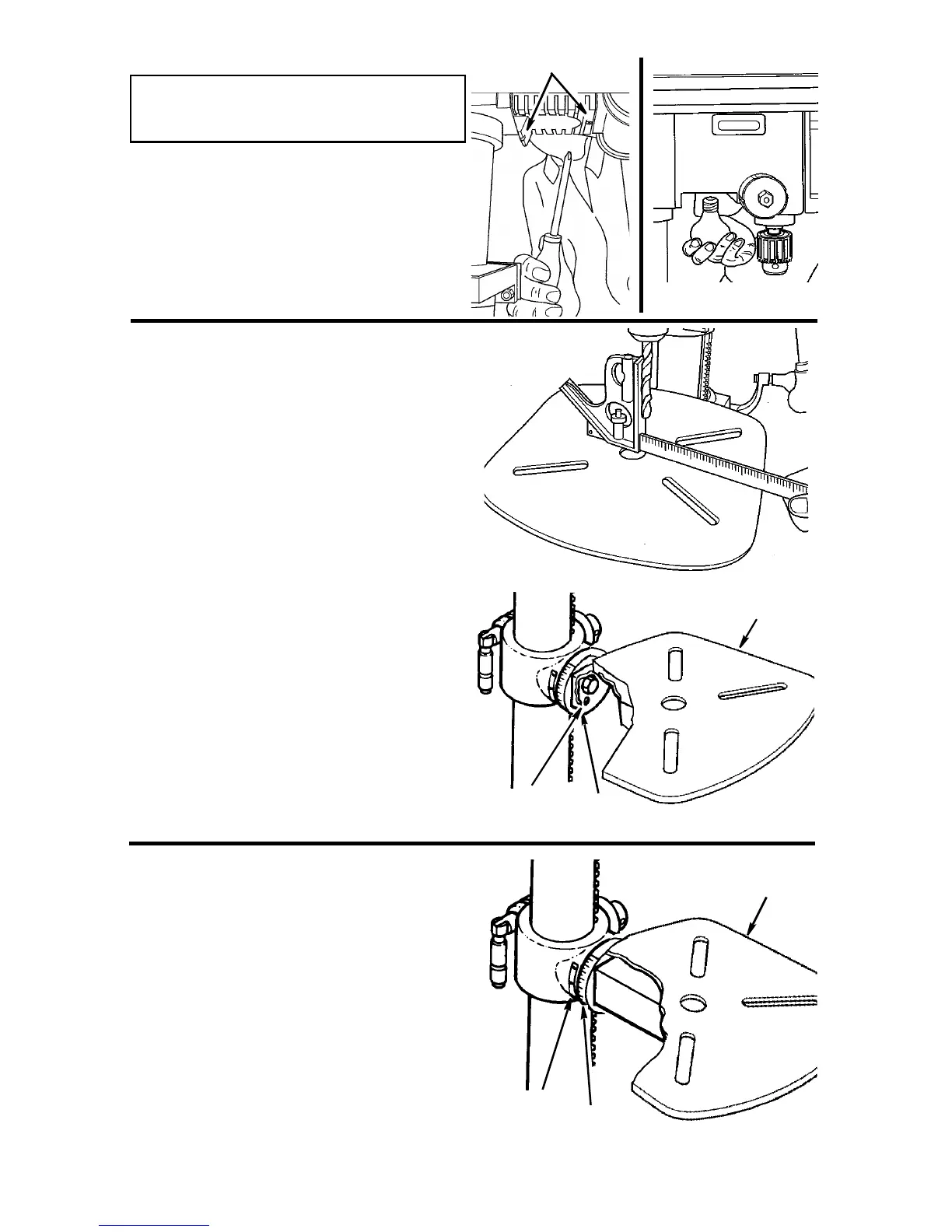 4. Alinee la mesa en ángulo recto con la broca