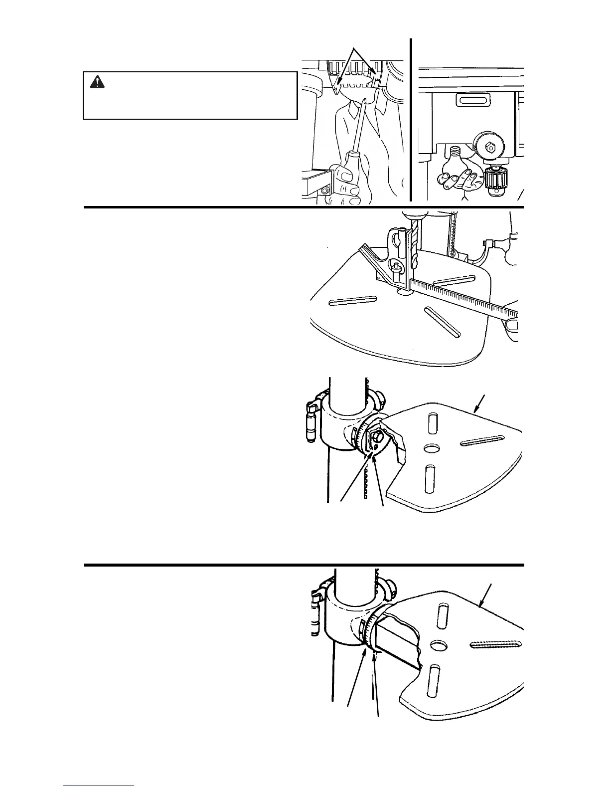 4. Align the table square to the rotor bit by