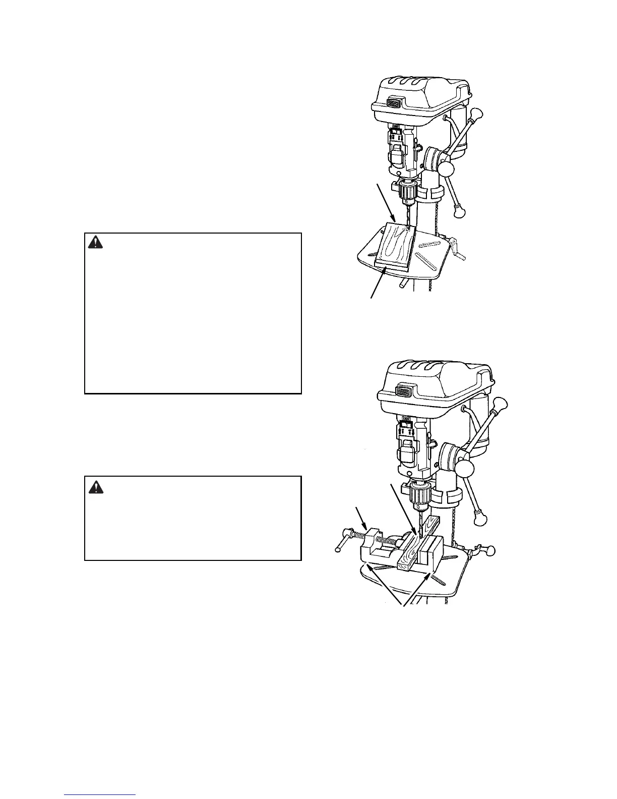 neath the workpiece. This will prevent