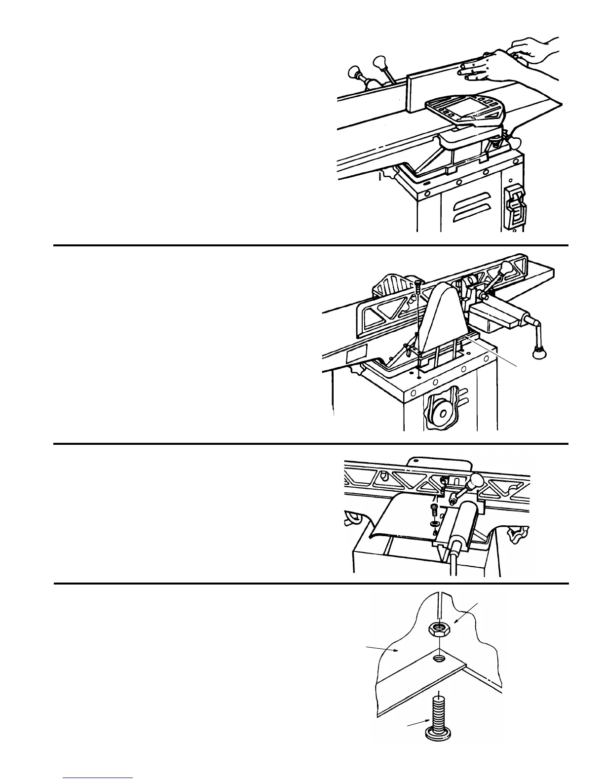 2. Hold guard in place and fasten to jointer fence assem-