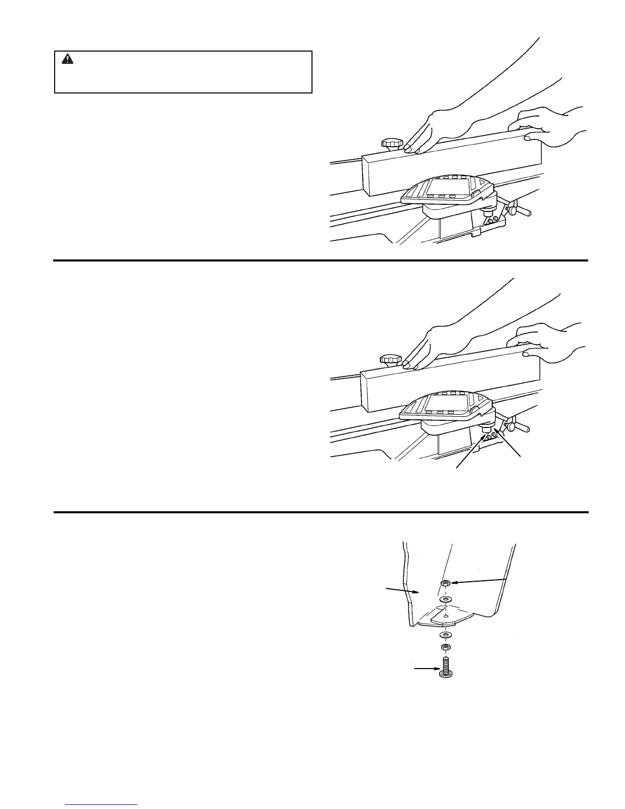 • Pass a 1/4 inch thick piece of wood over the cutter-