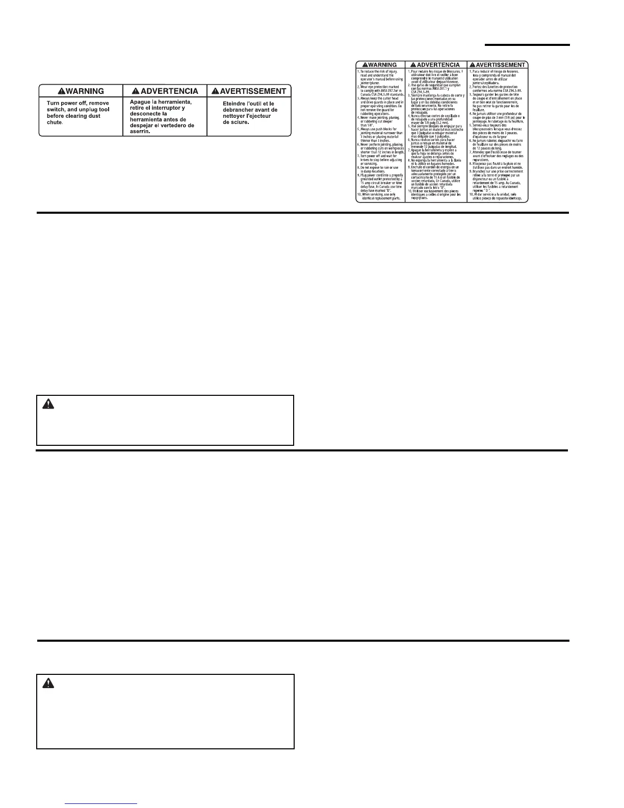 Safety Instructions For Jointer/Planer (continued)