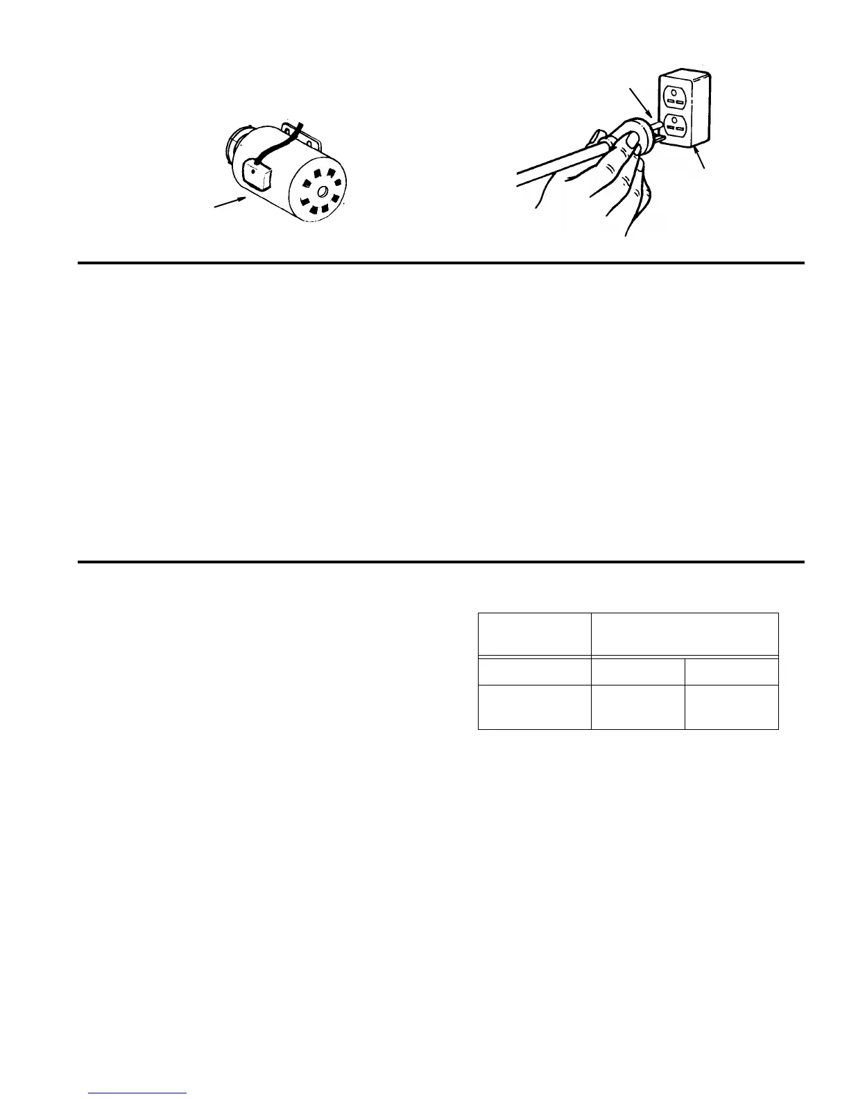 heating and motor burn-out, use the table shown to