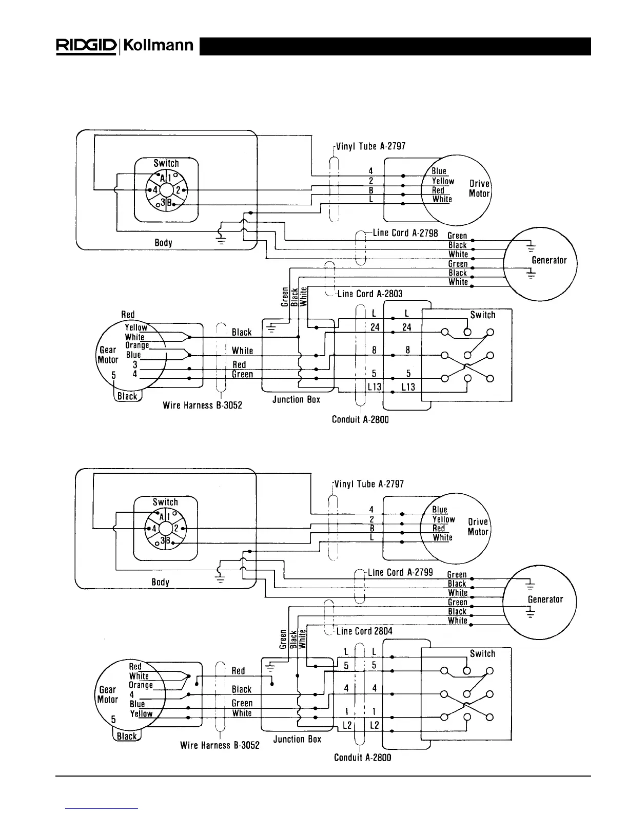 RIDGID K-2000 - Wiring Diagrams; 115 V;60 Hz Wiring; 230 V;50 Hz Wiring