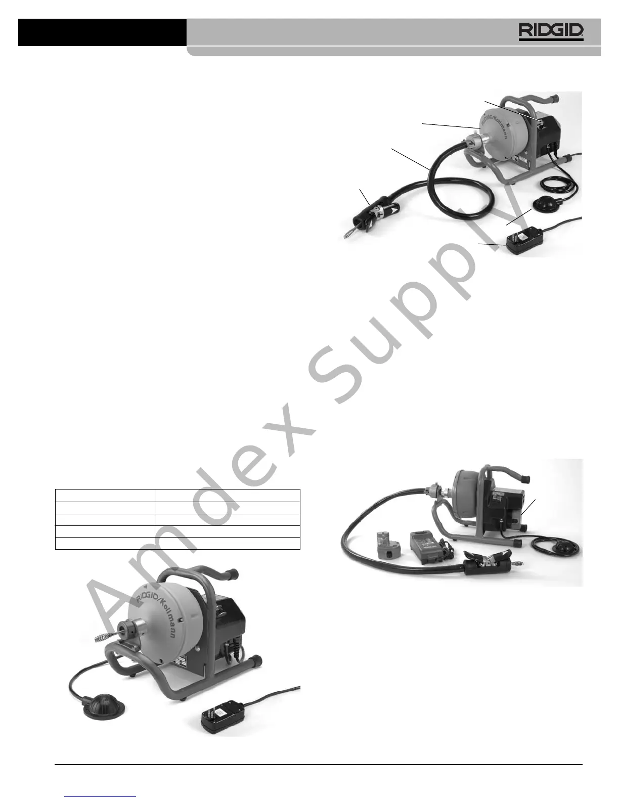 cable as it is retrieved from the drain. Manual feed versions