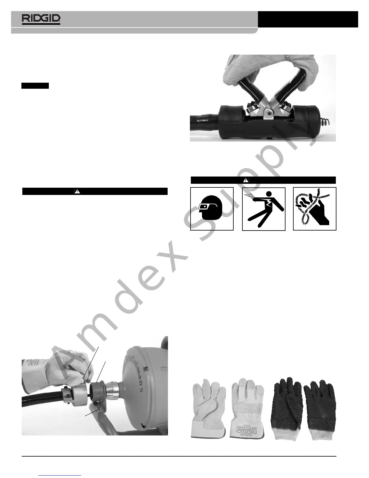 tating cable. If the gloves are not RIDGID drain