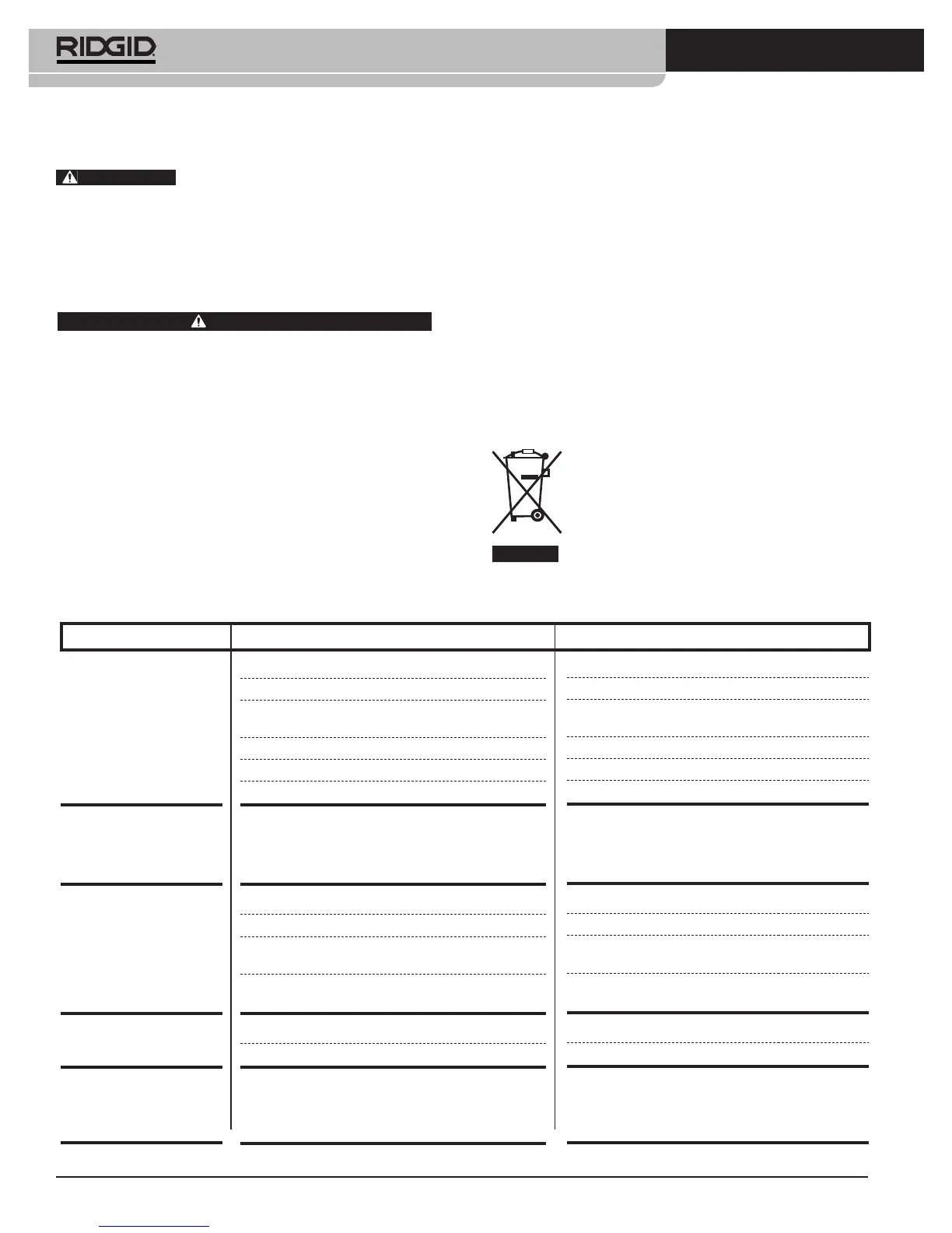 • Kontaktujte technické oddělení společnosti Ridge Tool na