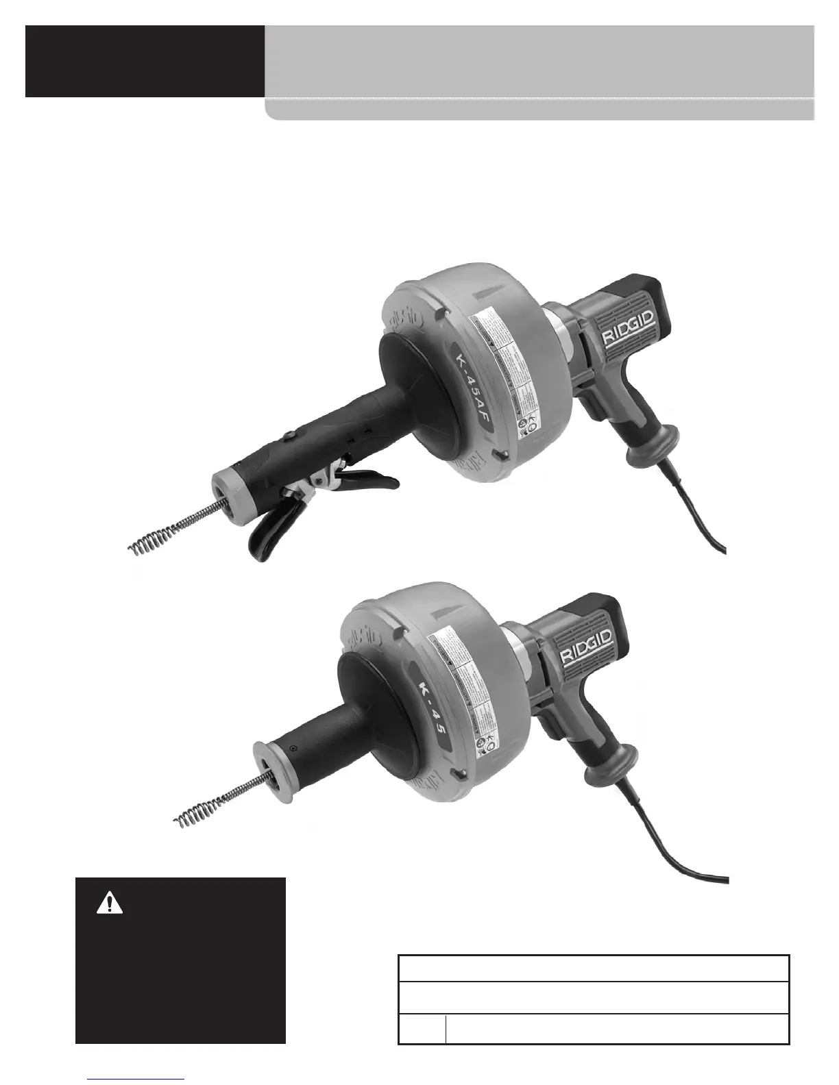 RIDGID K-45 - Default Chapter; Makine Seri Numarası Için Kayıt Formu