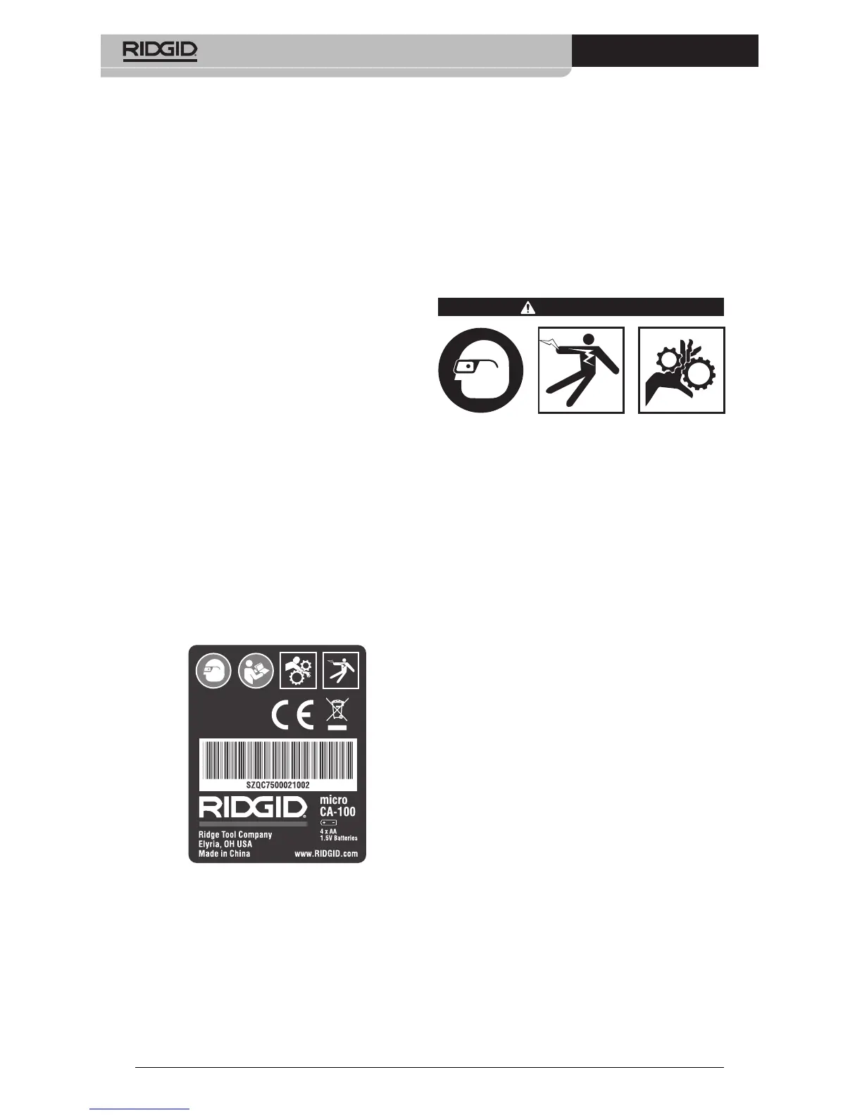 CA-100 i obszar roboczy zgodnie z poniż-