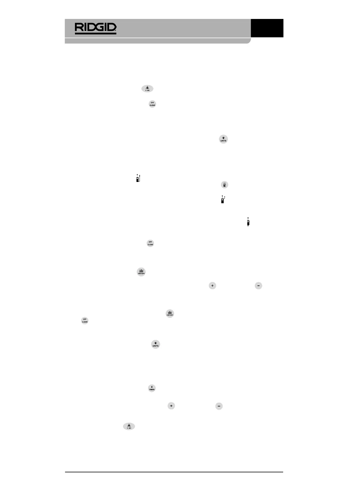 Trykk på ON/måle-knappen ( ) for å slå avstandsmåleren og laseren PÅ. Pass på