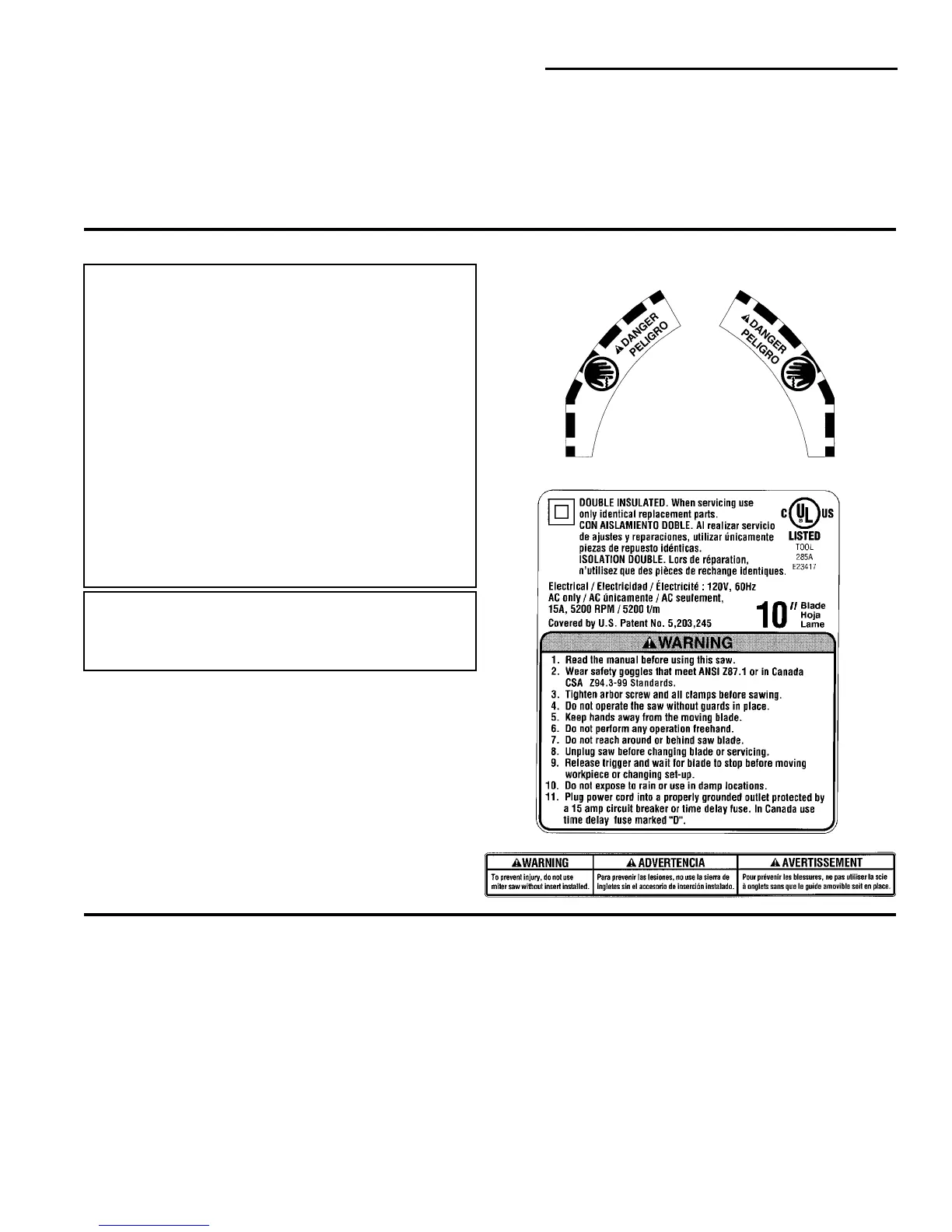 • Find and Read the following labels on the miter saw.