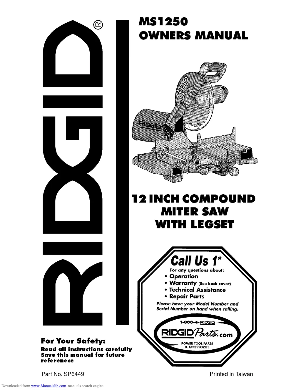 If the power head of your RIDGID Saw won’t fully rise or the blade guard won’t fully close, lubrication may be needed; refer to the “Lubrication” section. It could also be due to part failure, a pivot or guard spring not replaced properly after service, or sawdust sticking to the stops. In the case of part failure or spring issues, get authorized service. If sawdust is the problem, inspect and clean the stops.