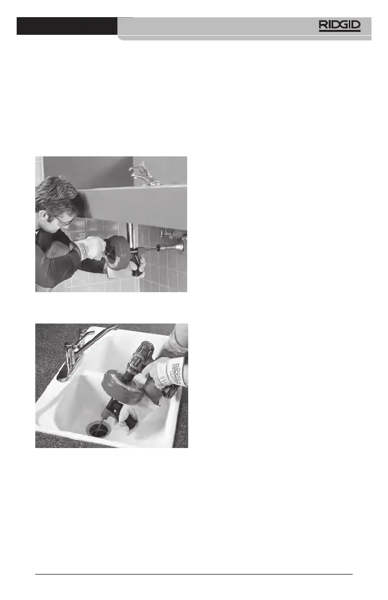 6. Place one hand on the drain cleaner han-