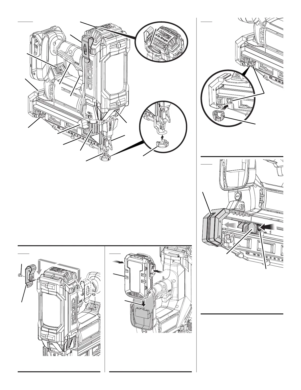 M- Depth of drive adjustment (réglage de profondeur d’enfoncement, ajuste de la profundidad de