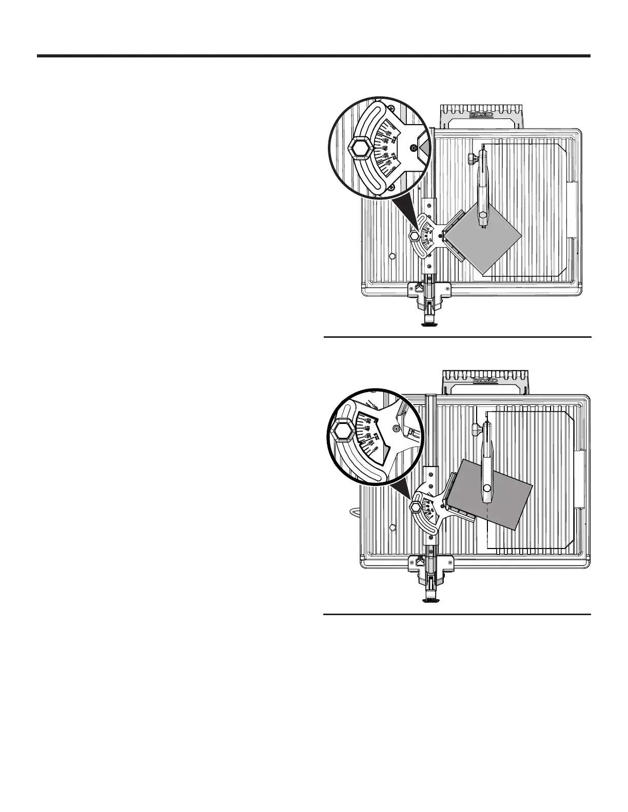 escala de ángulos y apriétela firmemente con la perilla.
