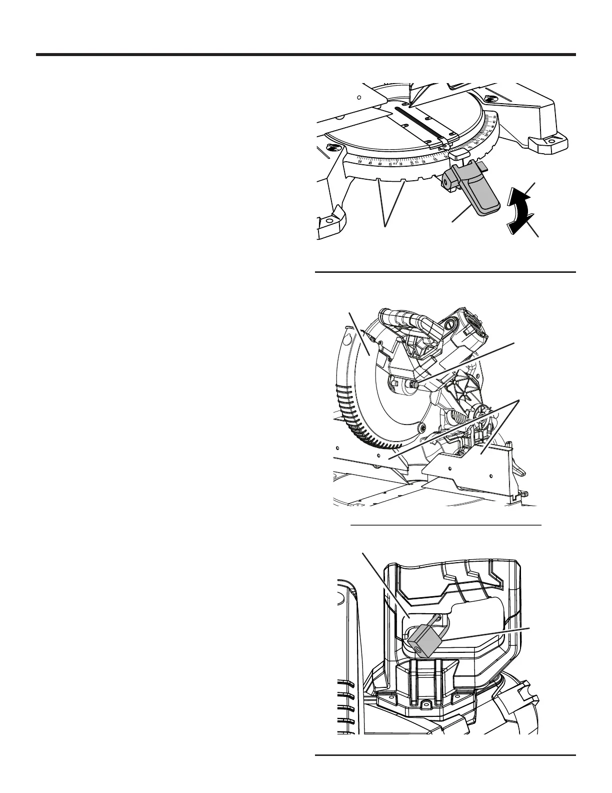 spindle which keeps the blade from rotating. Unplug the saw.