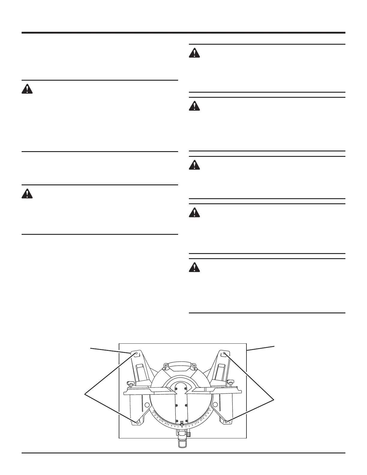 the miter fence. Damage could result to the blade if