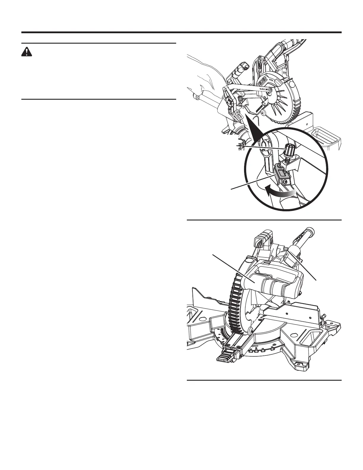 Cuando bloquee y desbloquee el brazo de la sierra, no es