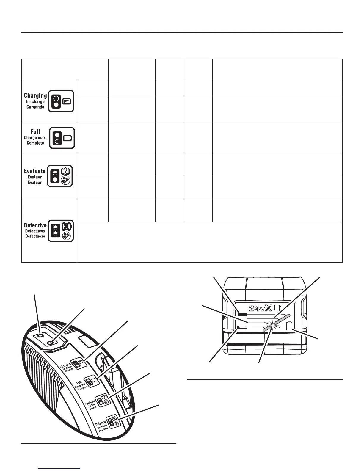 • If a different battery also indicates “Defective,” the charger may be defective.