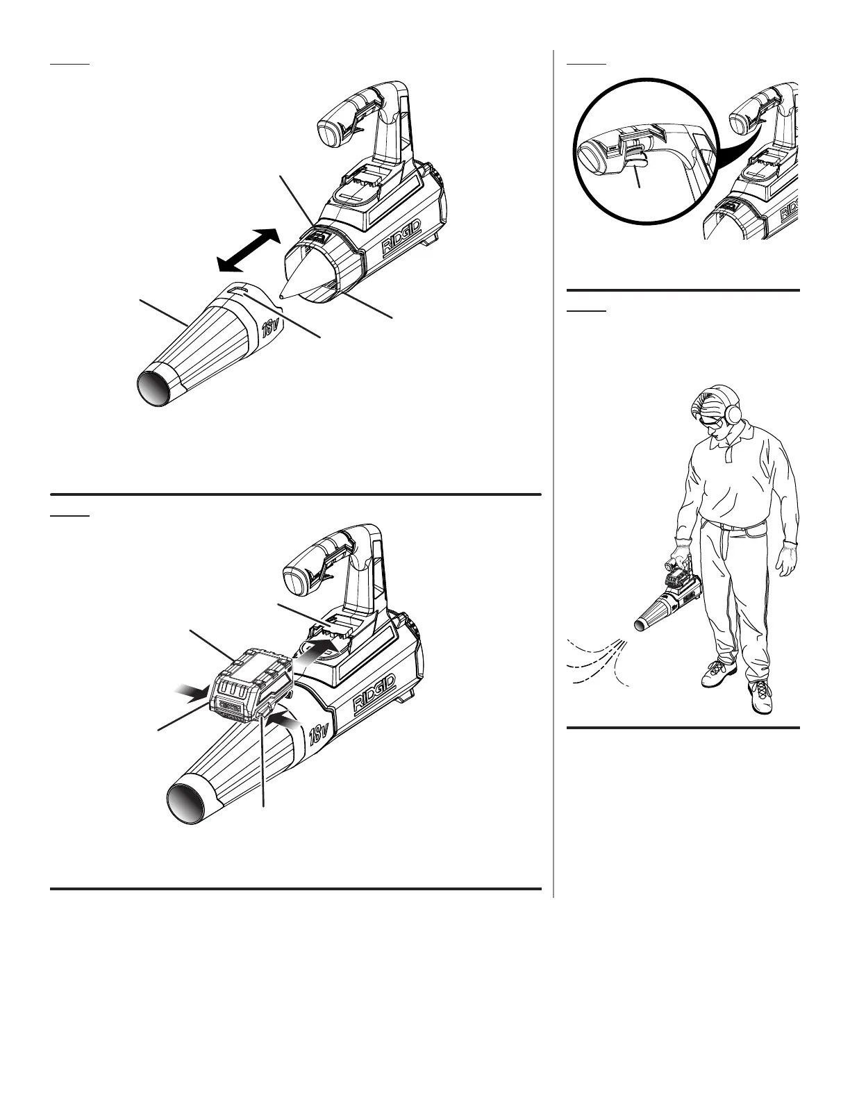 B - Battery port (logement de batteries, receptáculo para baterías)