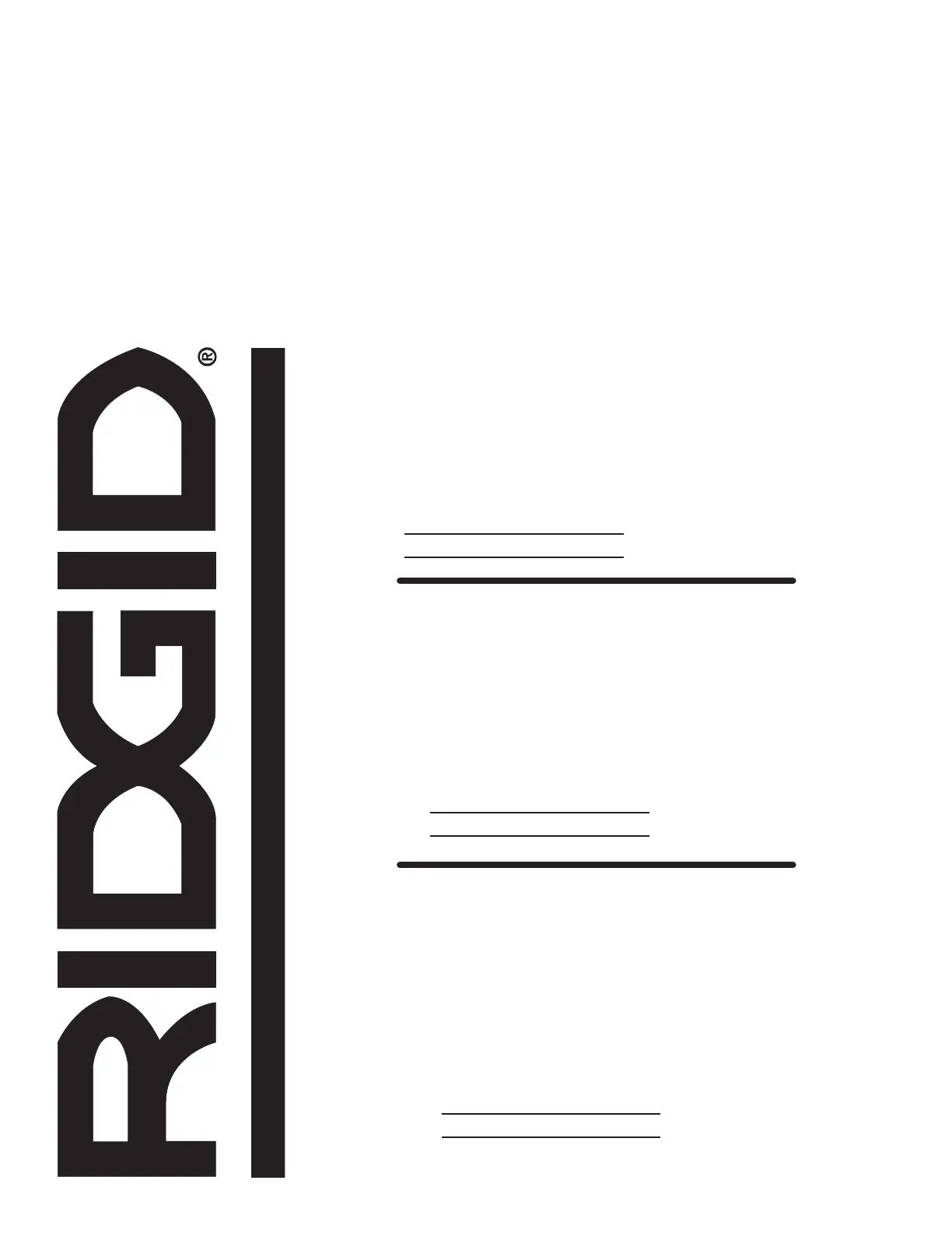 For parts or service, contact your nearest RIDGID® authorized service center. Be