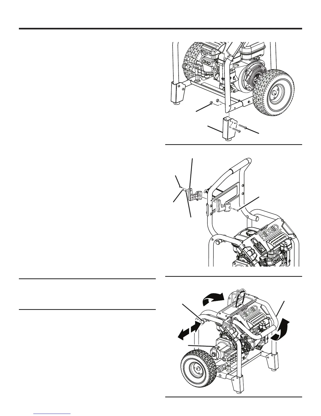 Lift the machine and slide the axle into the wheel mount-