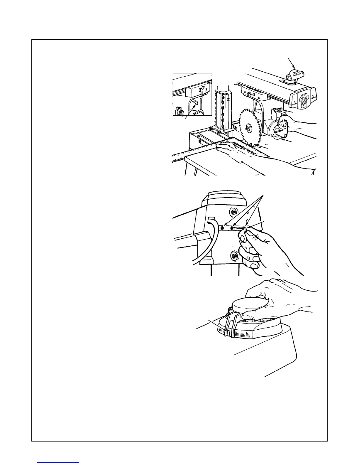 3. Lower arm until saw blade just clears the