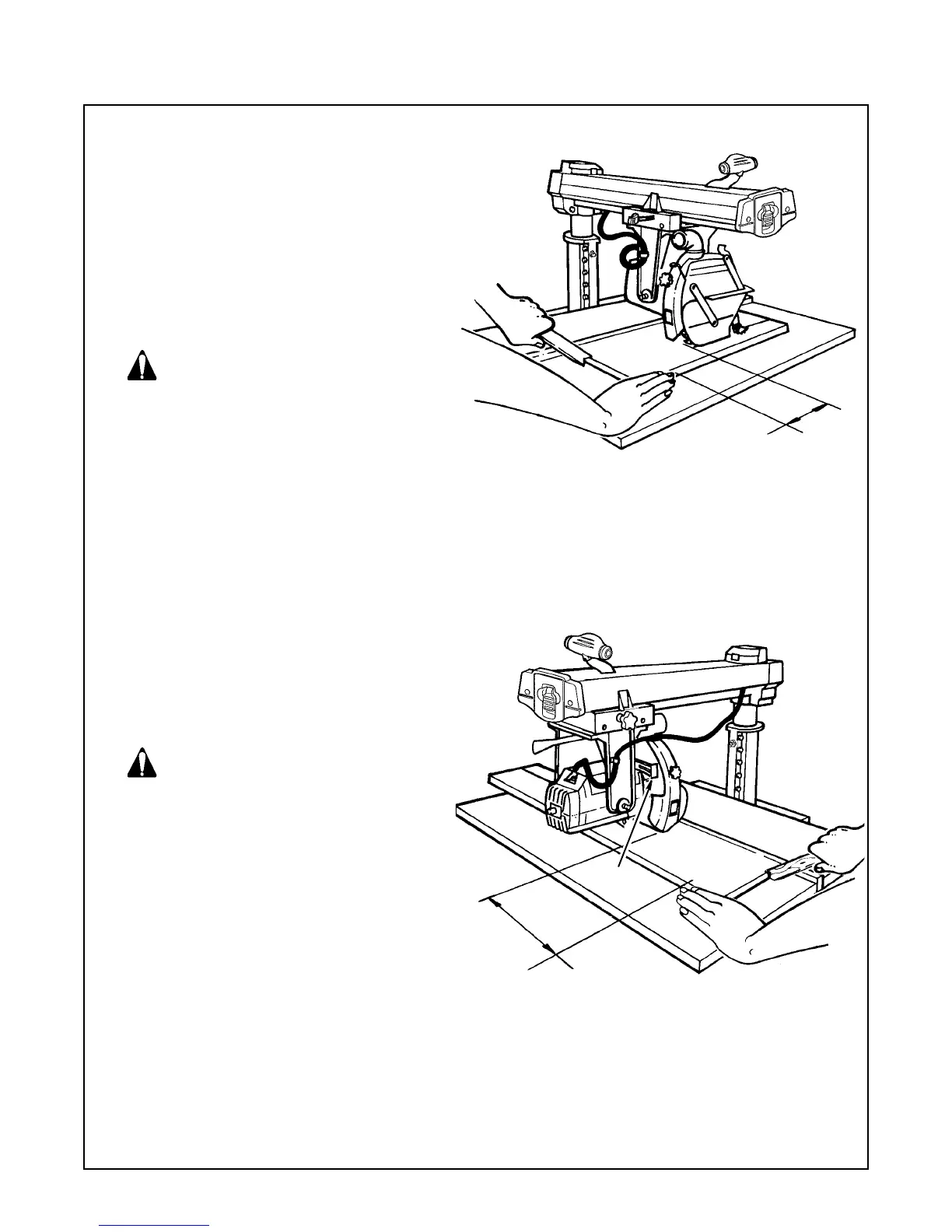 workpiece and to keep hand at least 8"