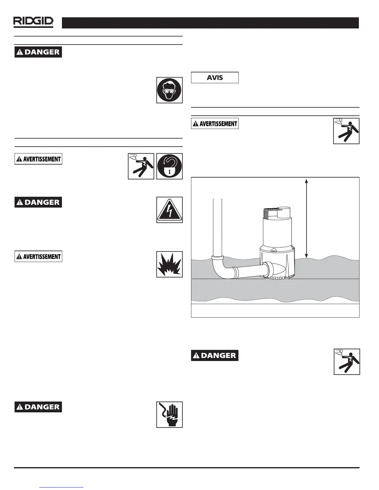 La pompe retirera l’eau jusqu’â 9,5 mm (3/8 po) au-dessus de la