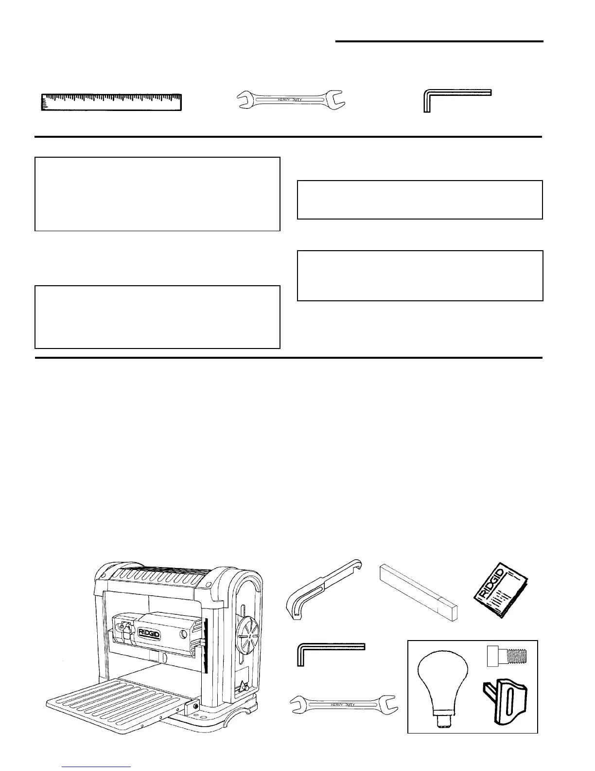 ble the thickness planer. Call 1-800-4-RIDGID or E-mail
