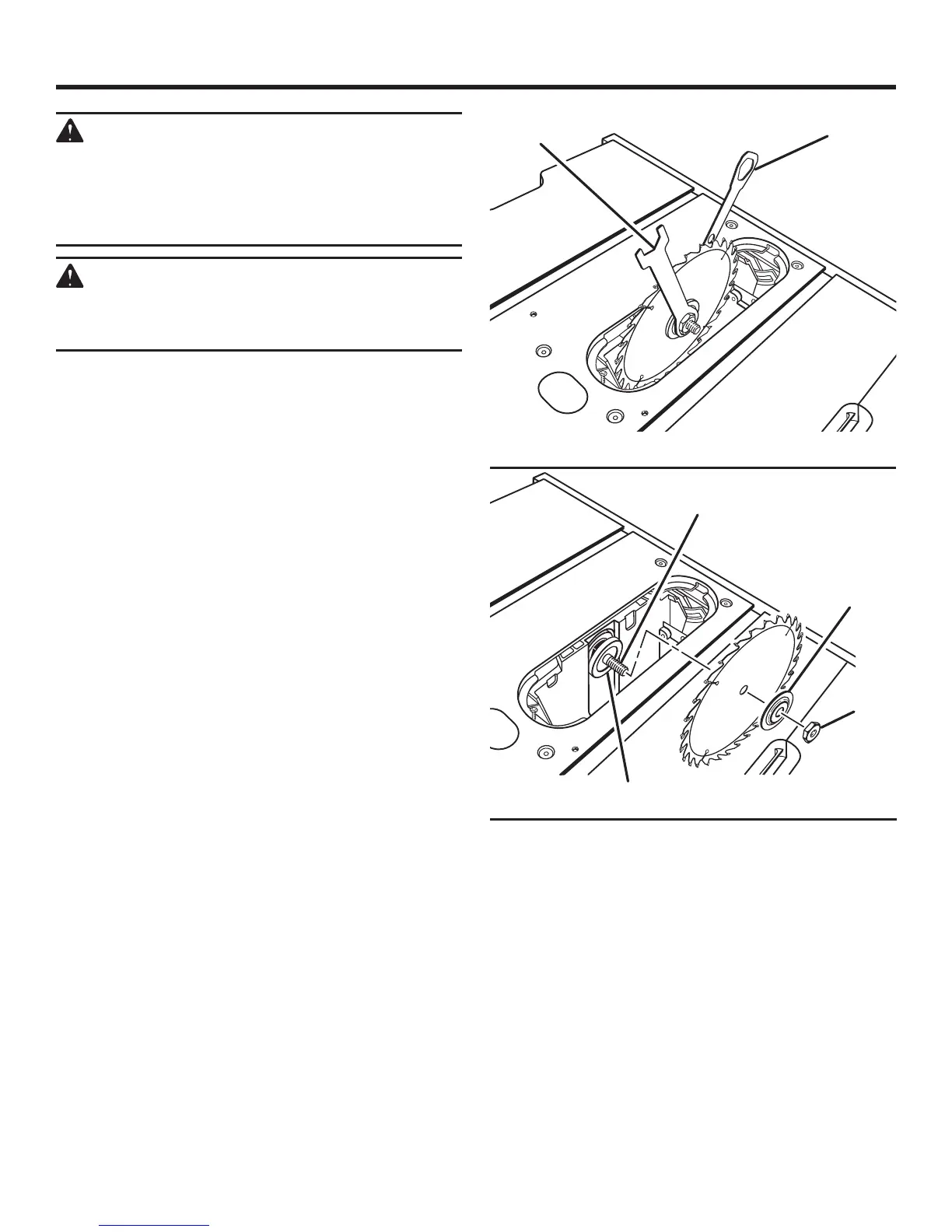 Lower the saw blade, raise the blade guard, and remove