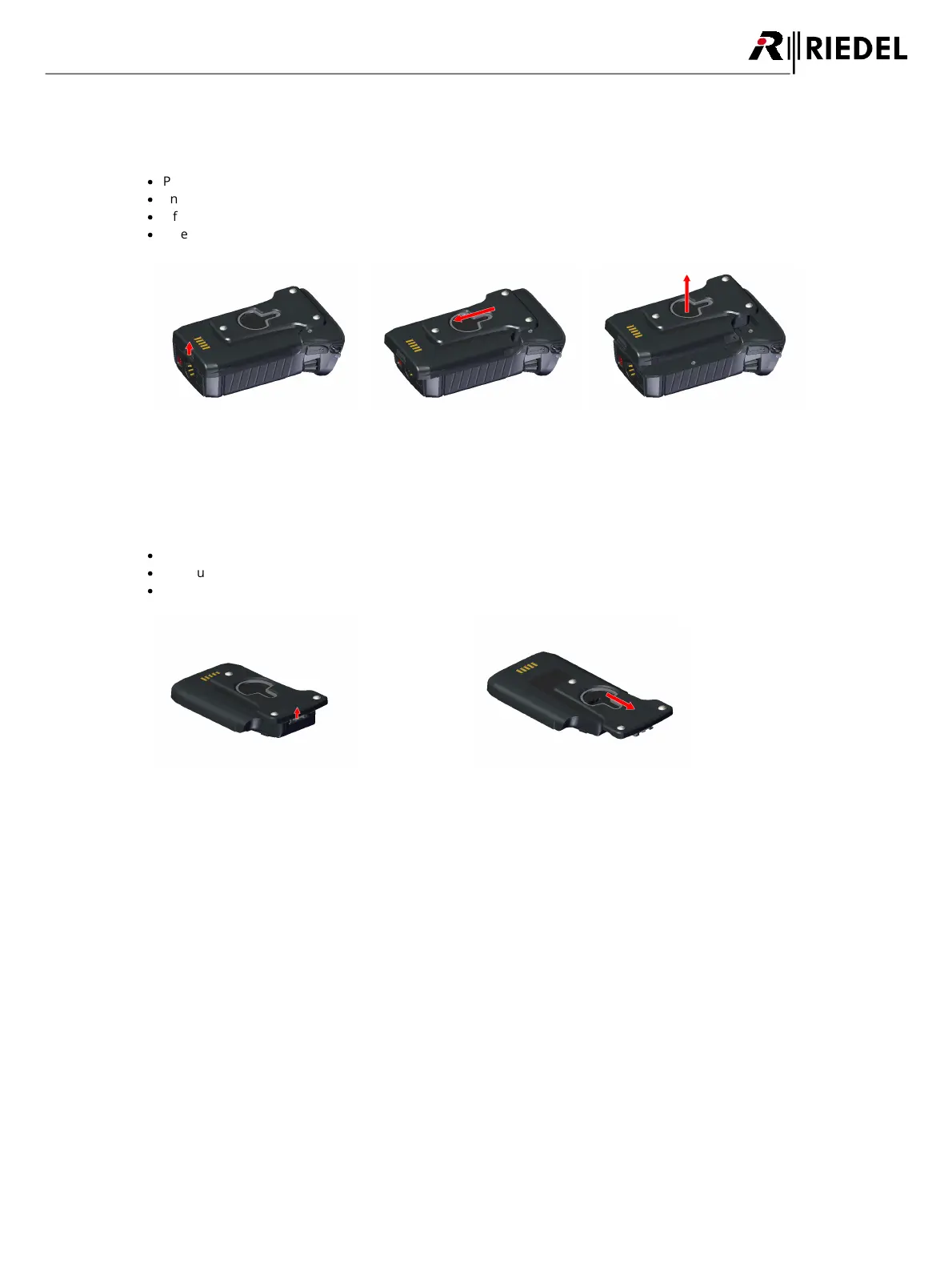 and push the battery at the belt clip to the bottom side of the Beltpack.