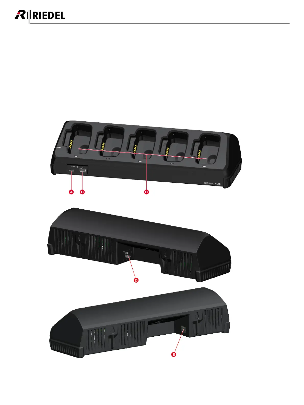 The Bolero 5-bay battery charger has the ability to quickly and safely charge up to 5 Bolero batteries simultaneously.