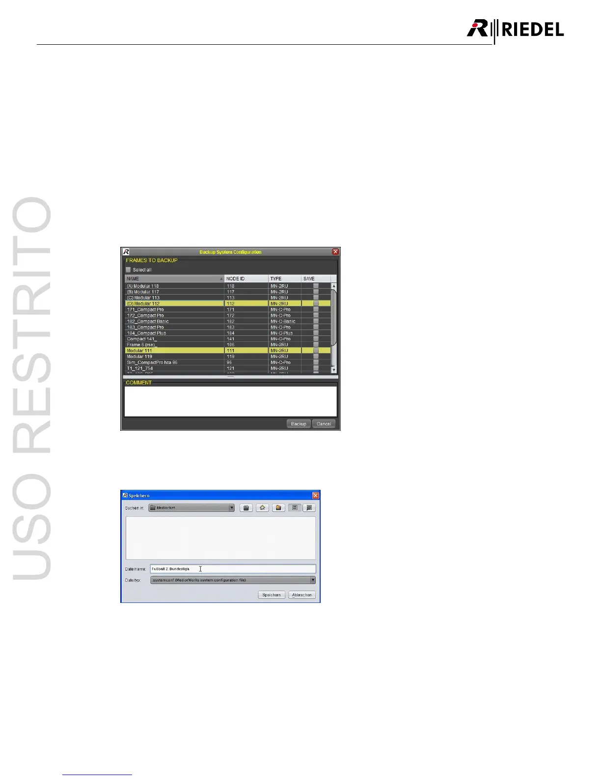 To store the system configuration it is necessary to select the desired Frame by the checkbox