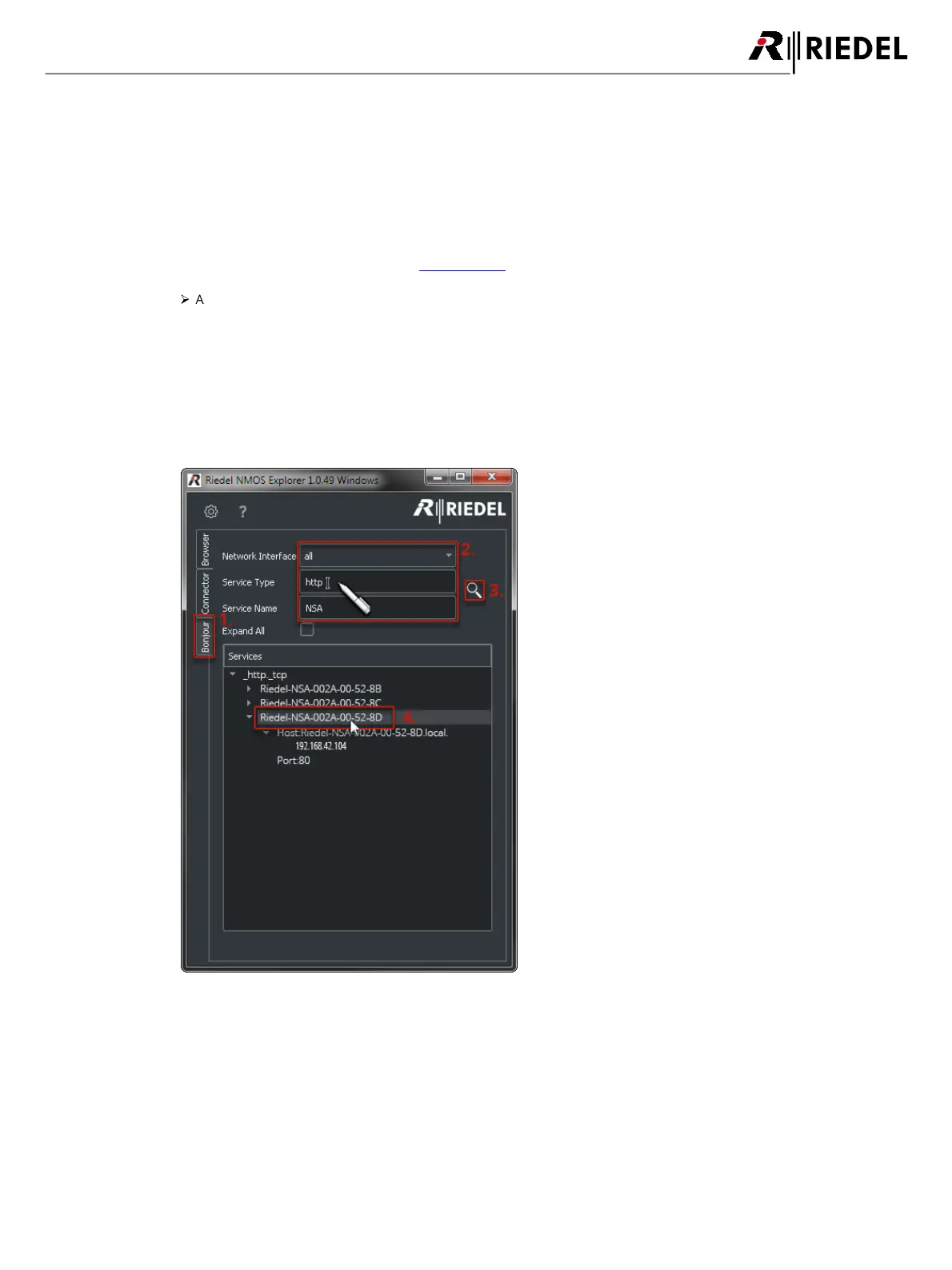 3. Click on the magnifier. All found devices will be listed. The NSAs announce themselves with the name "Riedel-