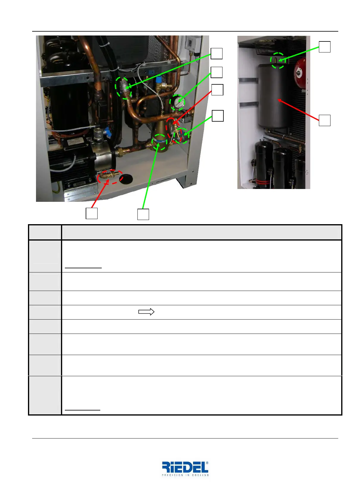 Fill the cooling circuit up to a pressure of about 1.7 to 2bar (see pressure gauge [8]). While you´re doing