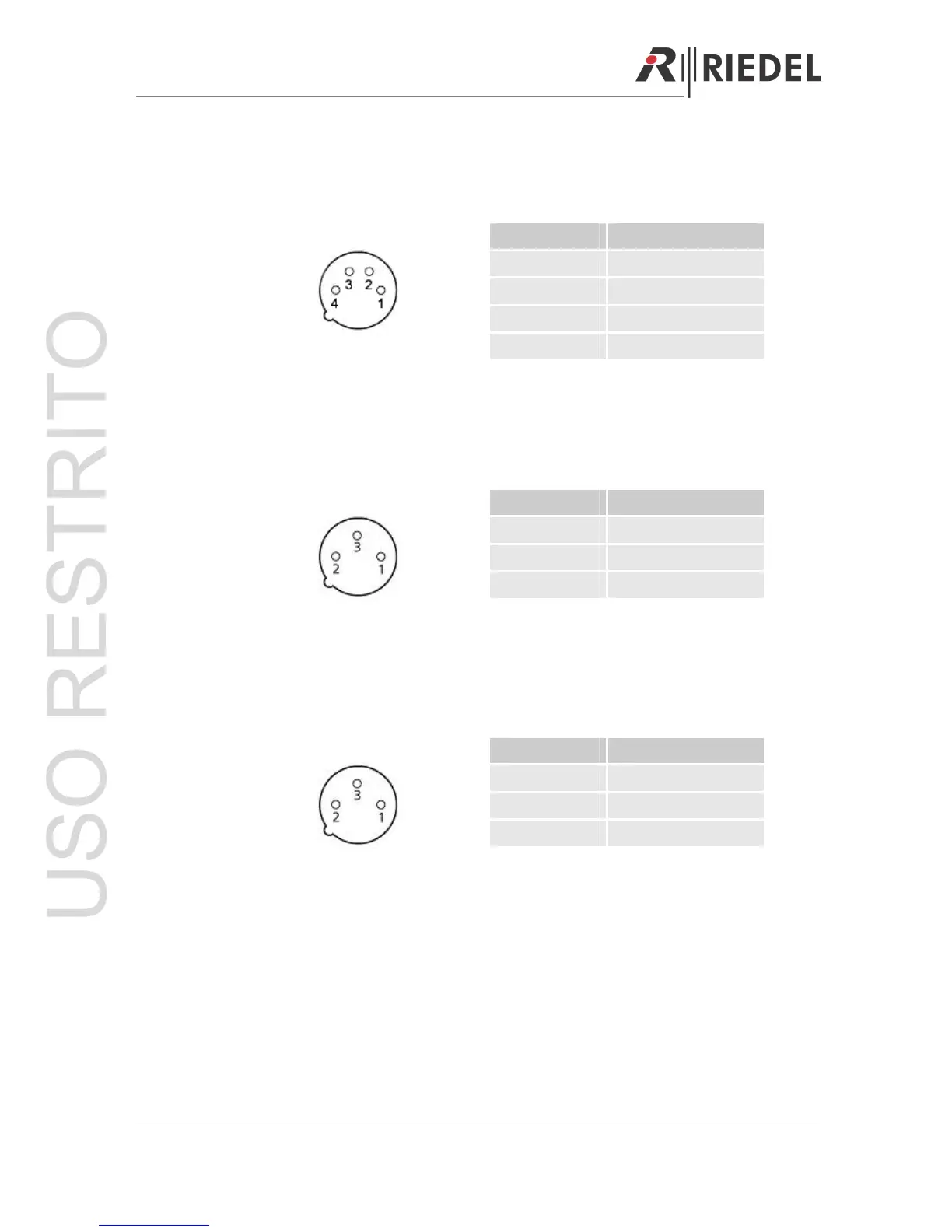 Riedel Performer C44 - 10 General Pin Outs; Headset 4-Pole Male XLR Connector; Digital Partyline 3-Pole XLR Connector; Analog Audio 3-Pole Male; Female XLR Connector