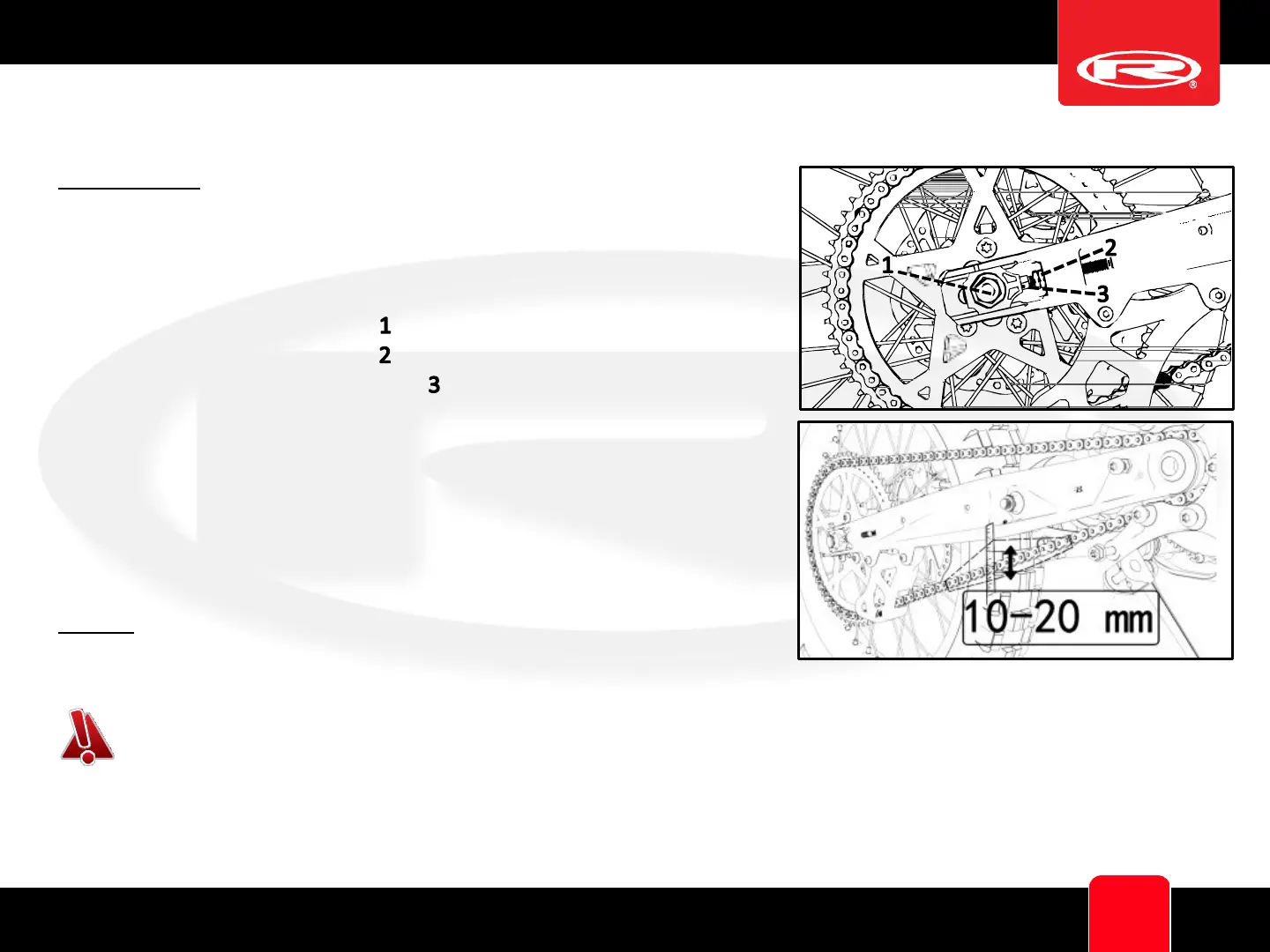 Adjustment to the chain tension shall follow: