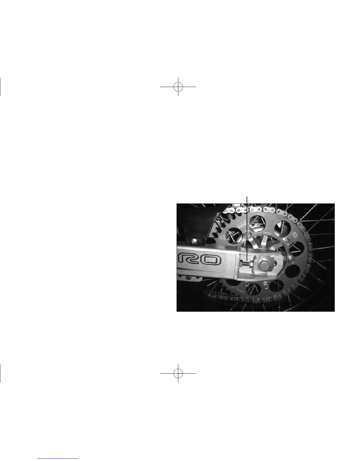 To correct the chain tension, loosen the rear axel