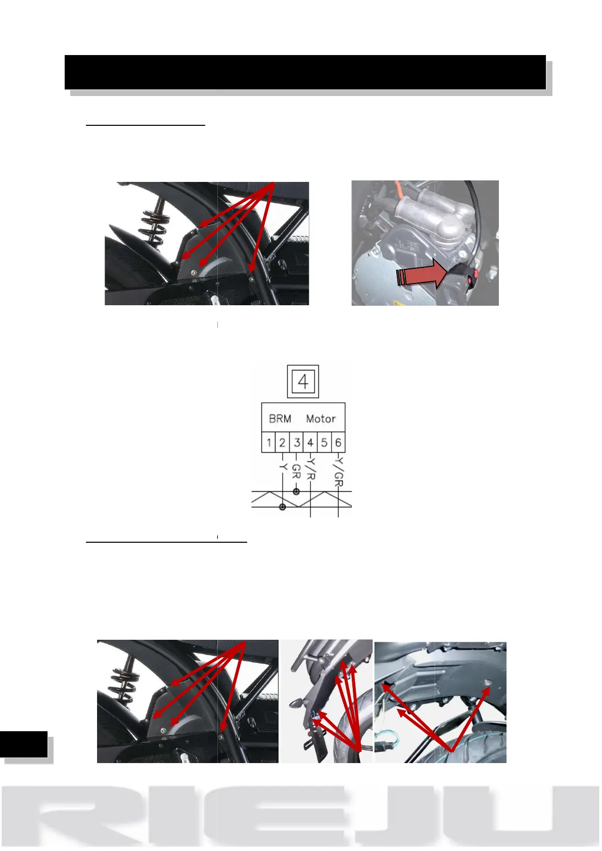 Remove rear plastic fender, removing 6 screws.