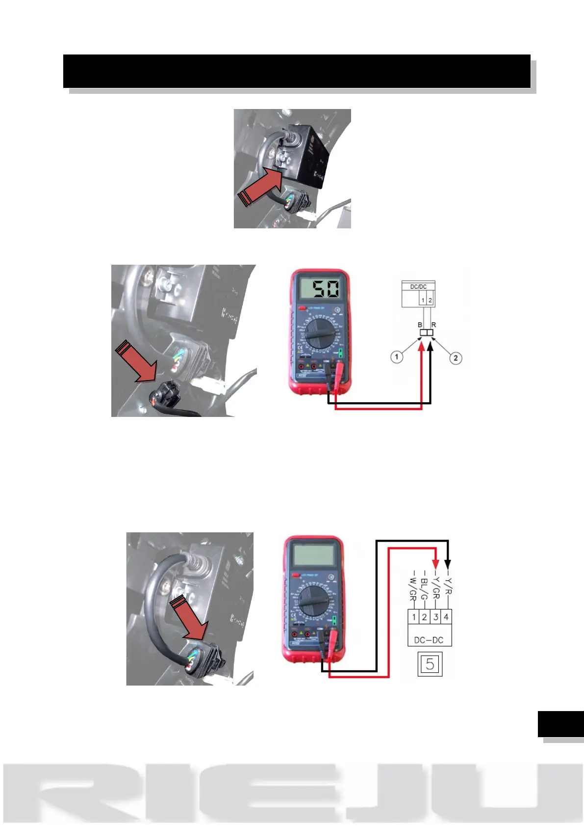 4. Multimeter will shows 50V, if voltage is NOK check wires continuity