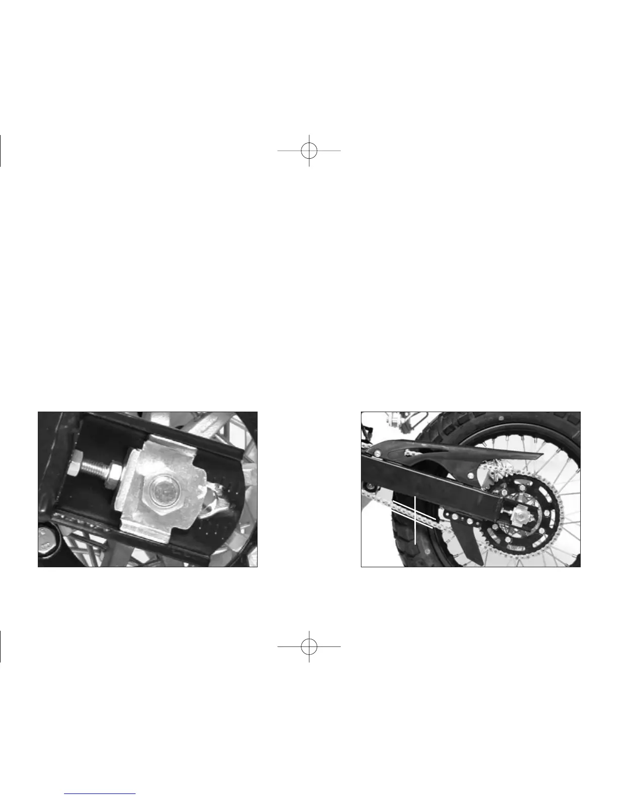 Pour le contrôle et l’ajustage de la chaîne, agir sur l’axe de la roue arrière en veillant à toujours travai-