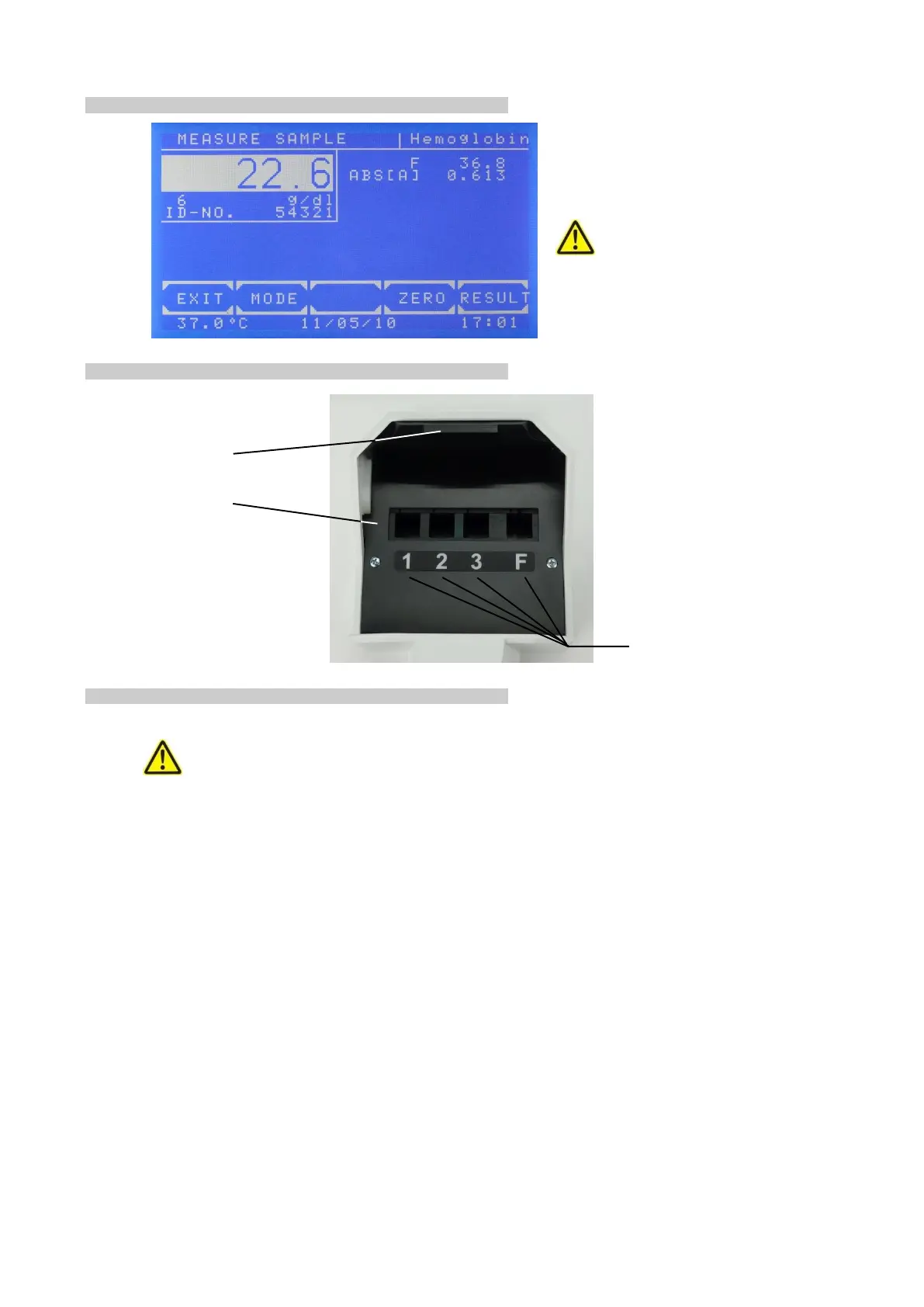 The optical path is directed from the back to the front of the device. Insert single cuvette according to the