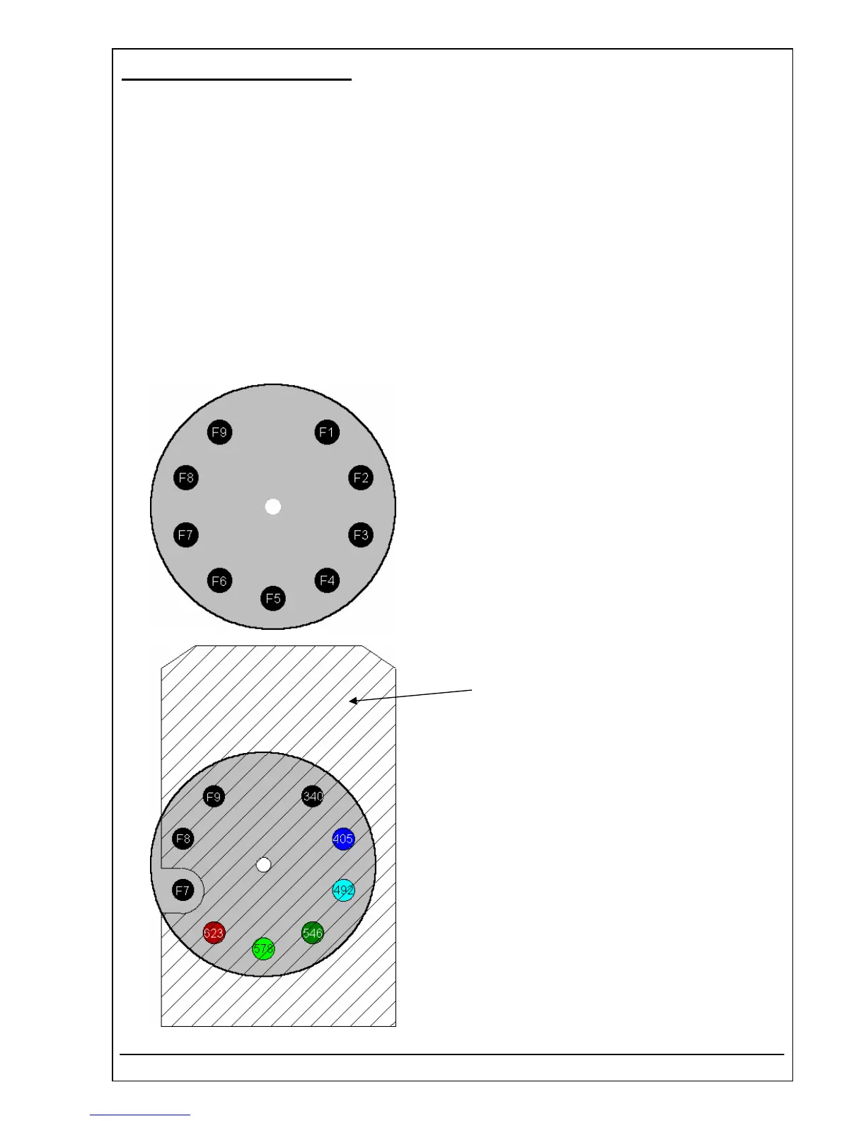 The filter wheel has nine filter positions called F1 to F9.