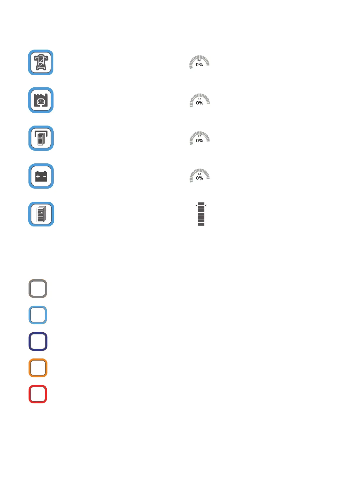 In general, the colour and the shape of the icons provide instant information to the status of the system.
