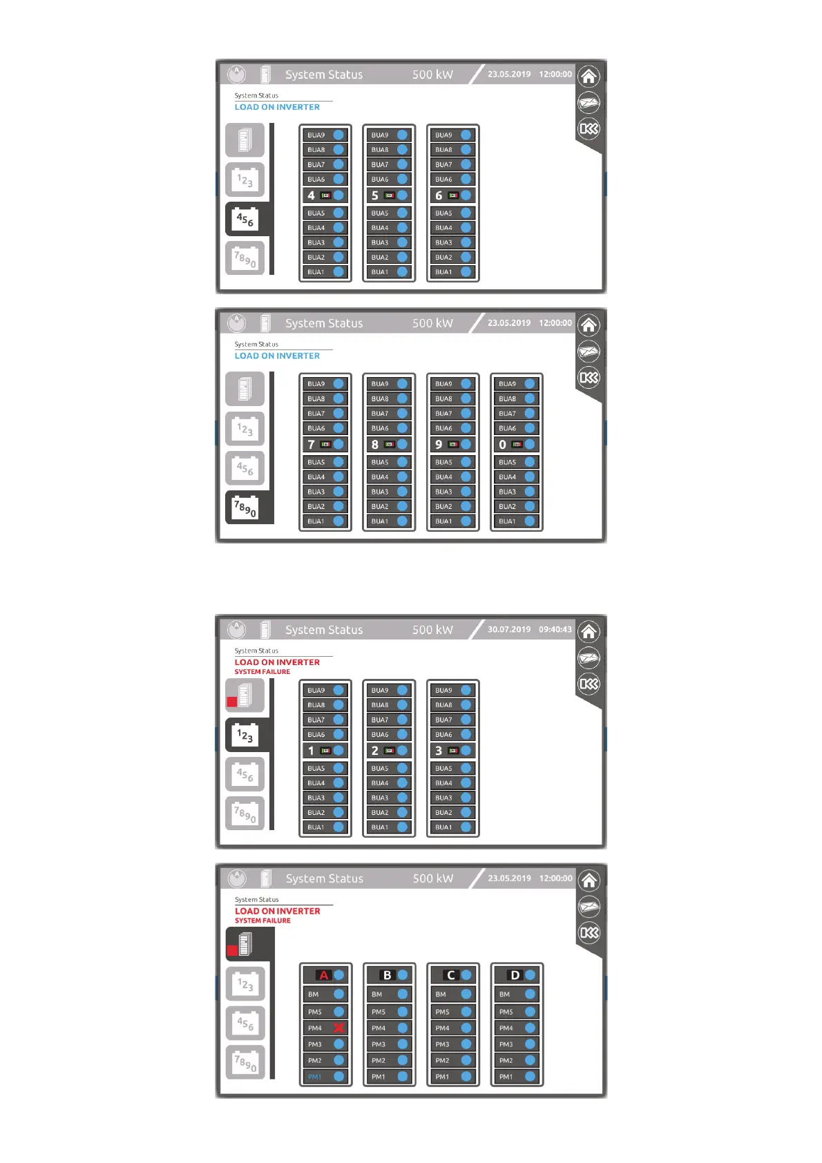 If for any reason an anomaly occurs within any of the cabinets, the related TAB will highlight the failure. For example, if a PM fails,