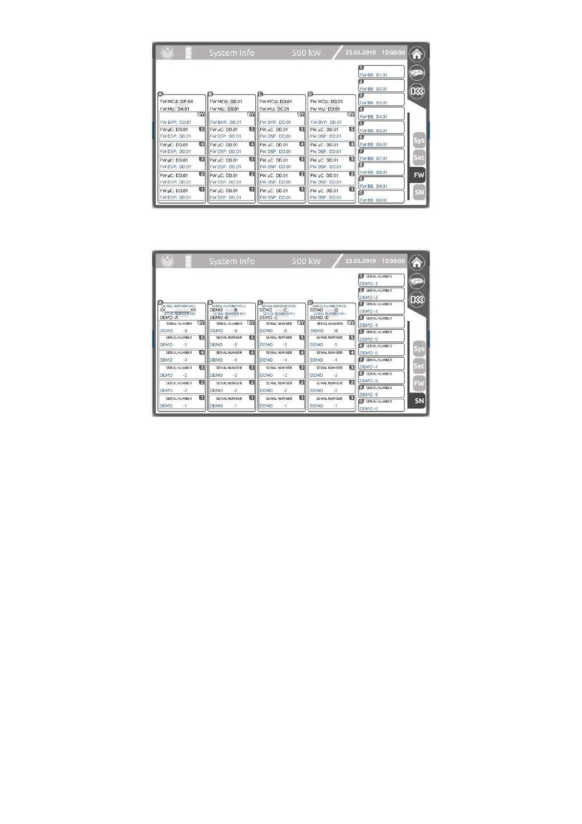 Riello UPS MULTI POWER MPX - Module Firmware Versions (FW); Module Serial Numbers (SN)