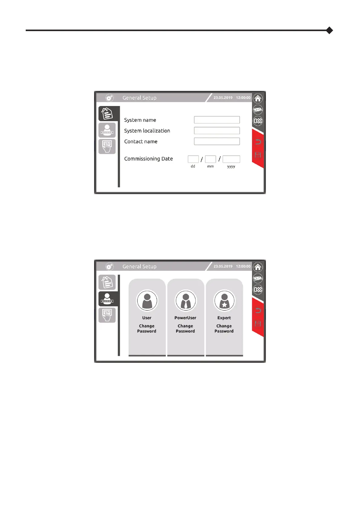 Touch the user icon matching the access level for which it is intended to set or change the password and type/change the